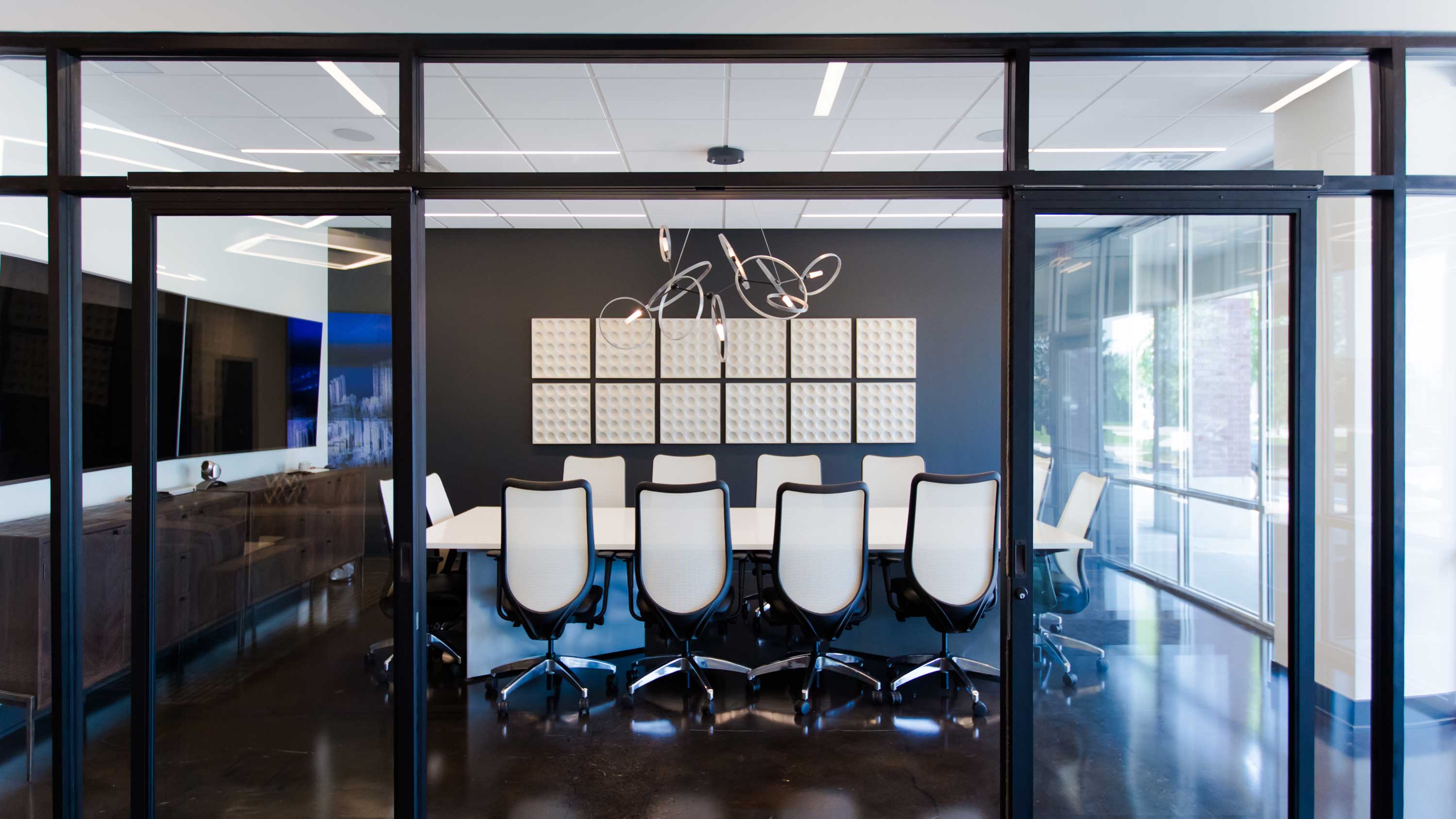 Activate dynamic lighting and shading scenes that are optimized for the purpose of the meeting whether it be a live board meeting or a video conference with the team in San Francisco.