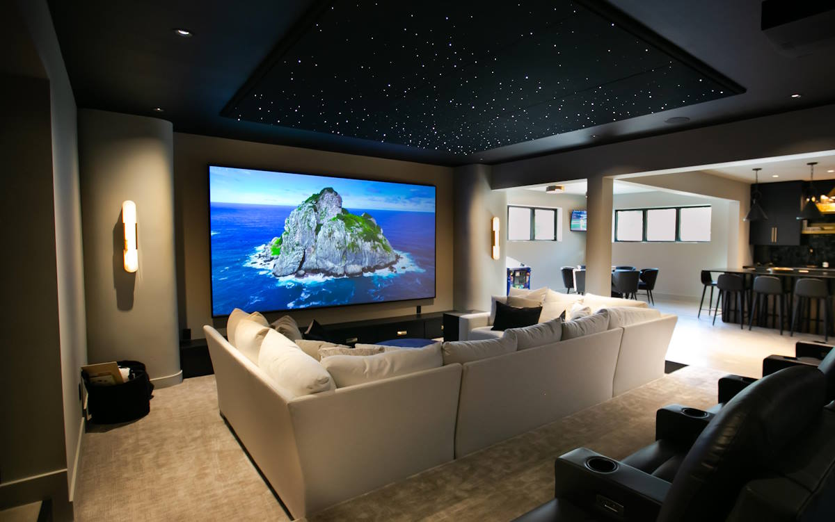 The home theater design and installation process is fun but requires tremendous attention to detail to ensure a picture perfect outcome. Many of our clients like to bring their interior designer on board to help with selections such as carpet, fabrics, seating and wall sconces. If you don’t have a designer, no problem! We have you covered. Every room is custom designed based on room specifications, budgets and client goals by our team of industry professionals. We will ensure that all room equipment and finishes are installed and calibrated to perfection so that you and your family will be able to enjoy many happy years of in-home entertainment.